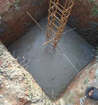Nous poursuivons les travaux de fondation d’un bâtiment à Ouagadougou avec méthode et précision. Les semelles en béton armé sont en place, les fers de structure sont positionnés, et nos équipes s’activent pour garantir la solidité et la conformité de l’ouvrage. Ce chantier illustre notre engagement envers la qualité, le respect des délais et la rigueur technique.